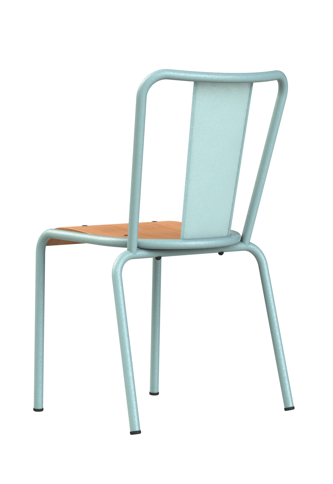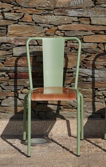 Židle je vyrobena z pevné ocelové konstrukce s kvalitní povrchovou úpravou, která zajišťuje dlouhou životnost i při intenzivním provozu. Sedák z okoumé dodává modelu přirozený akcent a zvyšuje komfort při sezení. Díky své univerzálnosti je vhodná do jídelen, kaváren, restaurací, zahrad, teras i veřejných prostor.