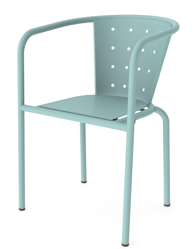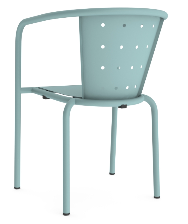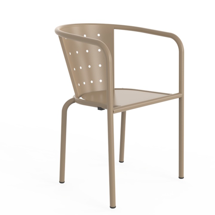 Židle je vyrobena z kvalitního kovu s povrchovou úpravou vhodnou pro dlouhodobé venkovní použití. Díky tomu je ideální volbou nejen pro soukromé terasy a zahrady, ale také pro restaurace, kavárny, hotely a další komerční provozy, kde je kladen důraz na funkčnost i estetiku.