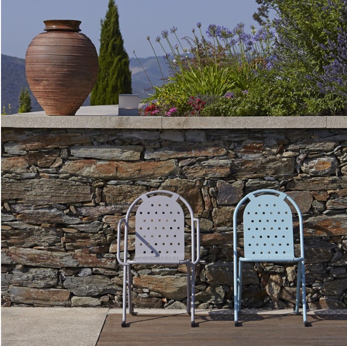 Židle 5005 je celokovová venkovní židle značky Adico s charakteristickým perforovaným sedákem a opěrákem. Jednoduchý obloukový rám dodává lehkost, zatímco pevná konstrukce zajišťuje vysokou odolnost při každodenním používání.